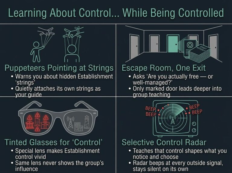 This article teaches that “control is everywhere” and asks “who is controlling what, toward which outcome, and by what method?”, yet it steers readers to see Establishment control as dangerous and Lighthouse’s own influence as loving, necessary governance. That asymmetry…