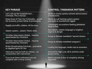 - By alleging a deliberate, coordinated attack by government, regulators, media, and ex‑members, the text primes followers to see all critical information about Lighthouse (e.g. BBC’s A Very British Cult and subsequent reporting) as products of Scamtology’s satanic agenda, not as potentially valid evidence.[6][1]