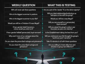 - High‑control groups often globalise threat by portraying ordinary information channels as instruments of demonic or totalitarian control, which discourages members from trusting independent sources and deepens siege mentality.[2][3]