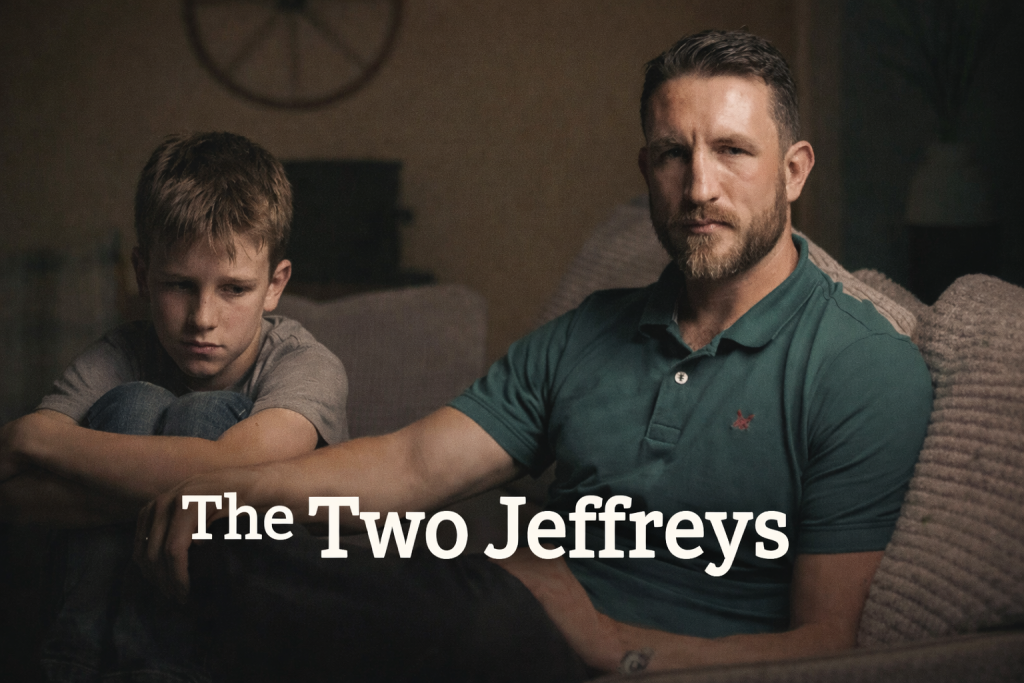 The update invents, repeats and expands on Jeffrey’s private struggles: “tried to leave this world as a teenager by hanging himself in a forest,” “felt lost and abandoned by his dad,” “burdened by his mum” as a “replacement husband,” chronic depression, self‑harm, etc.[1]