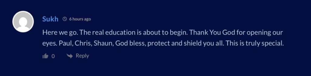 • One commenter describes the work as “the real education” and thanks God for “opening our eyes,” which is strong evidence of spiritual validation being used to cement agreement.[1]